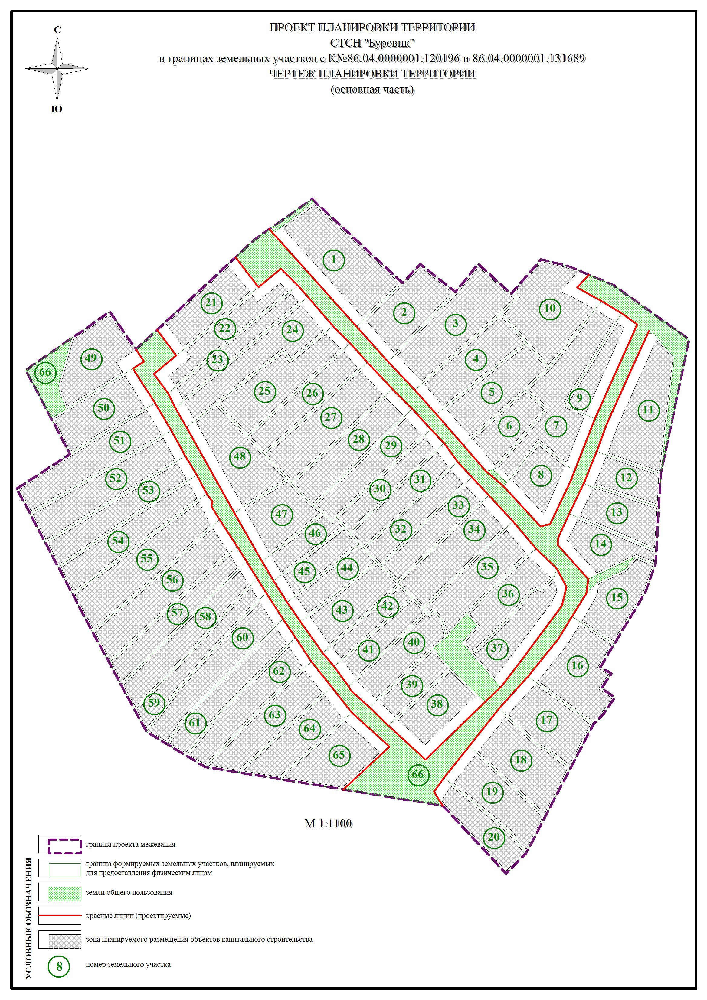 1.Утвердить проекты планировки и межевания территории садоводческого товарищества собственников недвижимости «Буровик», расположенного на земельных участках с кадастровыми номерами 86:04:0000001:120196 и 86:04:0000001:131689: