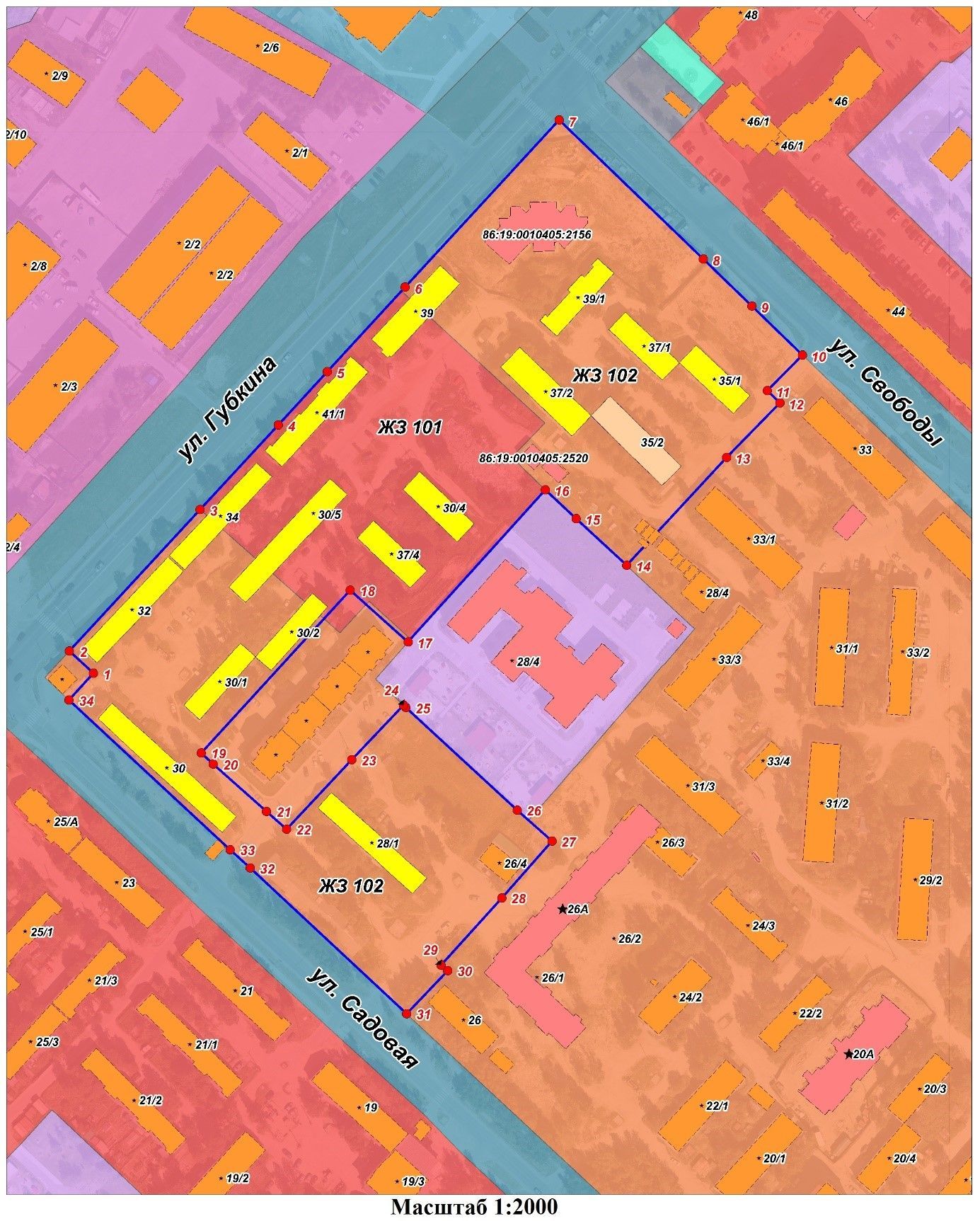 1) линиям улиц: Садовая - Губкина - Свободы и жилой территорией 5 микрорайона;